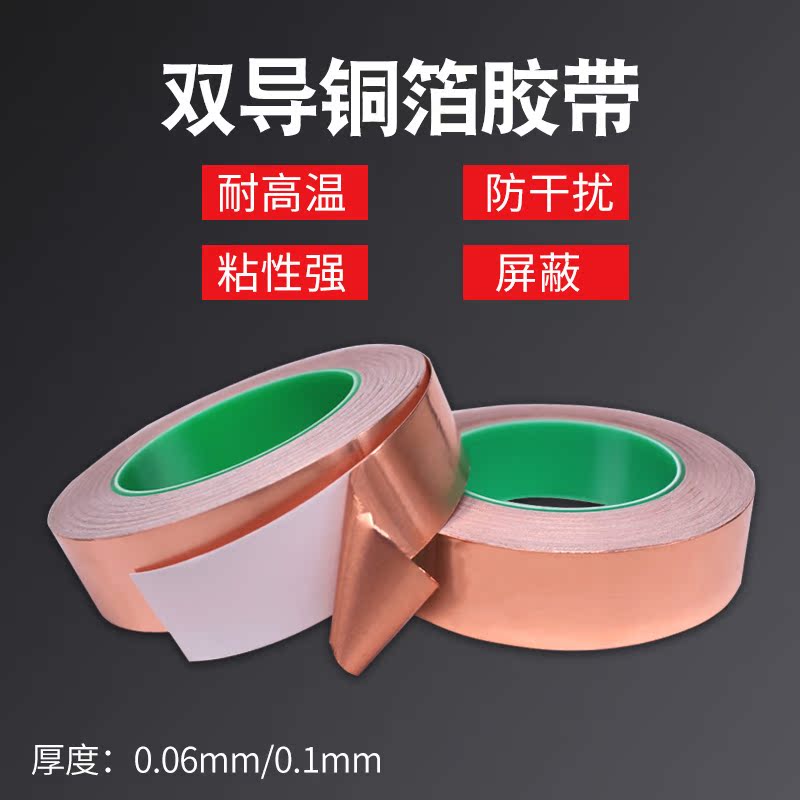 Double-lead copper foil tape conductive tape high temperature resistant pure copper double-sided shielding anti-radiation conductive copper foil paper tape