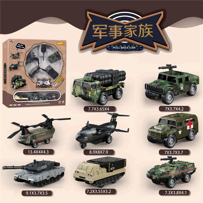 Alloy Pull Back Military Series Large Complete Set of Alloy Pull Back Military Vehicles Eight Packs of Alloy Pull Back Fire Trucks Eight Packs of Alloy Pull Back Special Police Vehicles Eight Packs