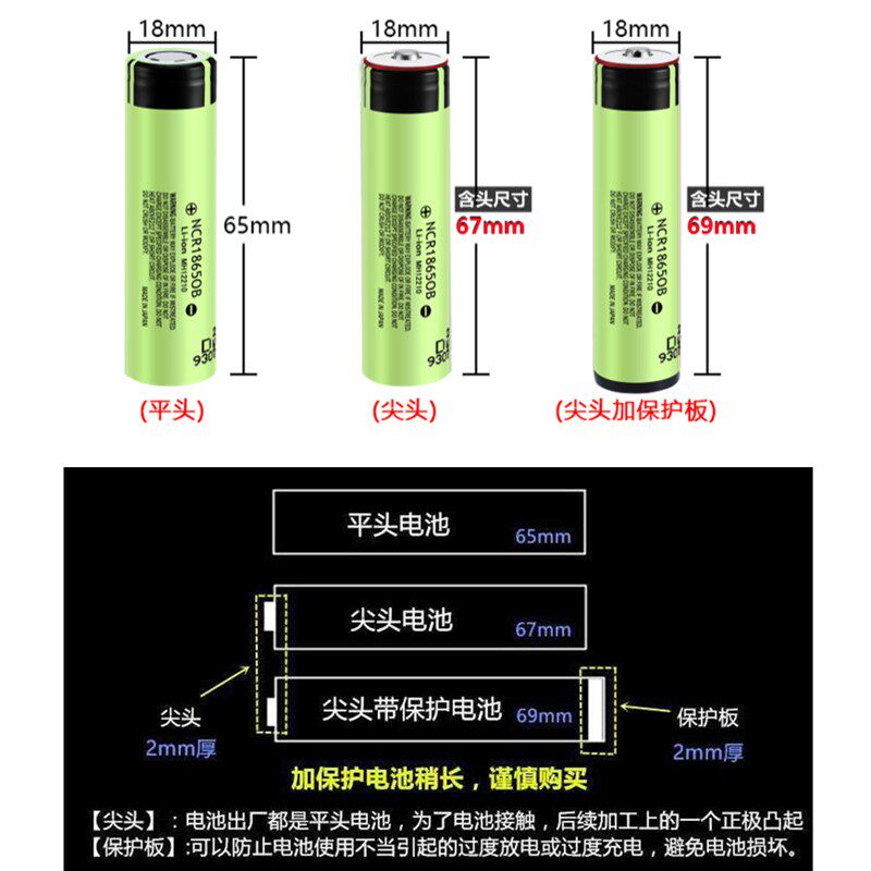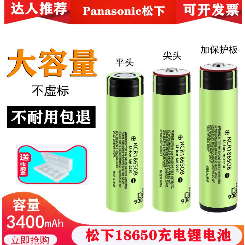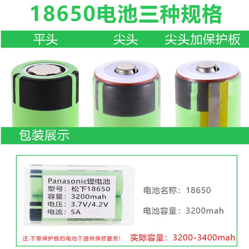 Panasonic 18650 (2 packs) flat head capacity type 3200-3400 Panasonic 18650 (2 packs) pointed head capacity type 3200-3400 Panasonic 18
