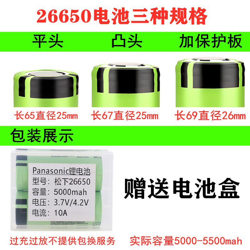 Need flat head 26650 power battery, please shoot here 1 (26650 convex head) power battery foot 5000 mAh 1 (26650 small convex head) power battery