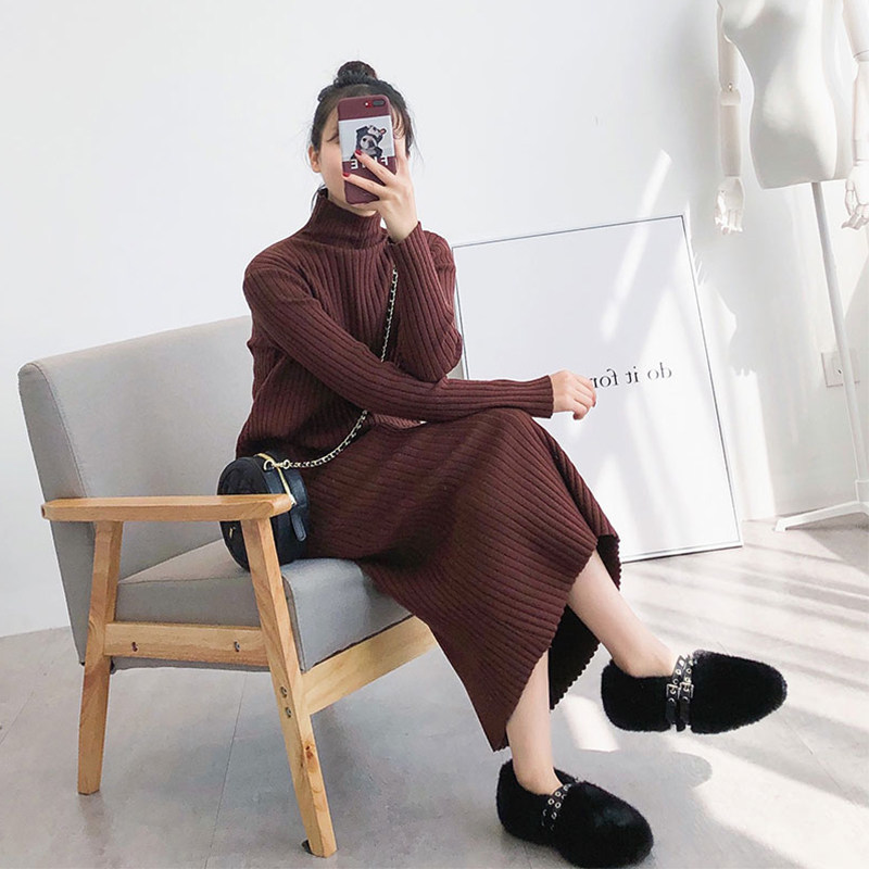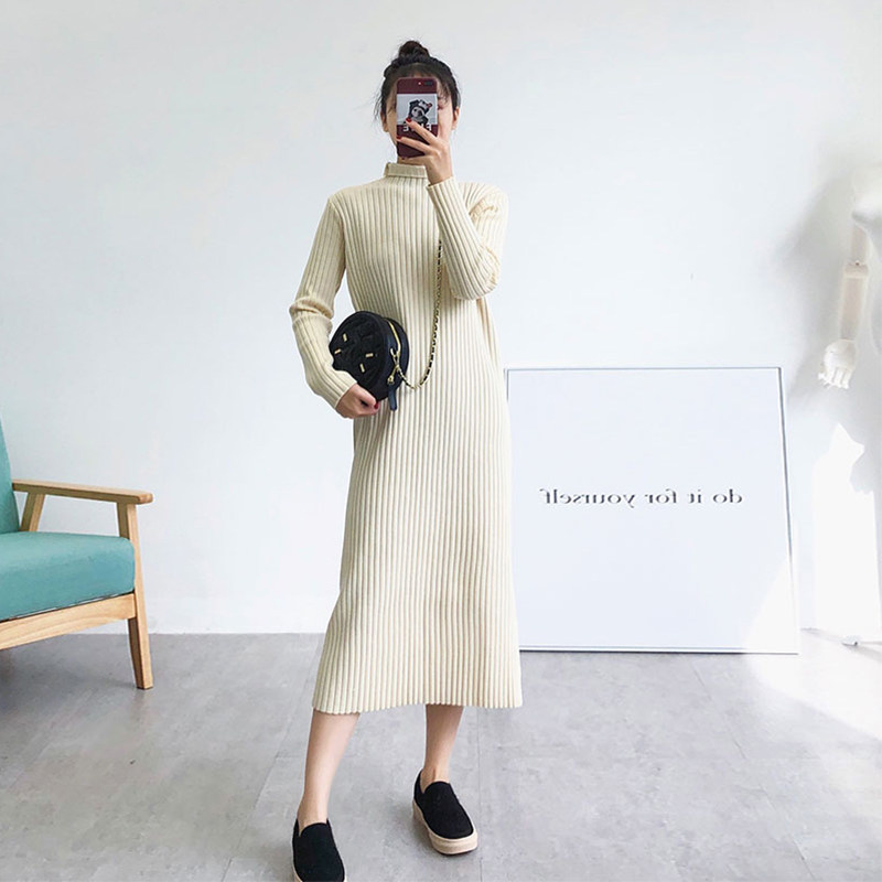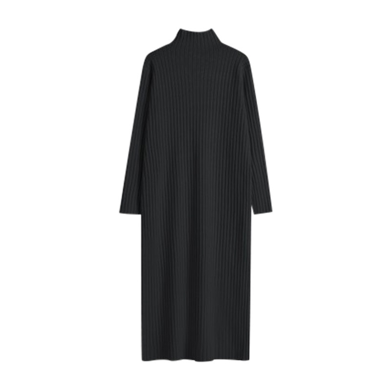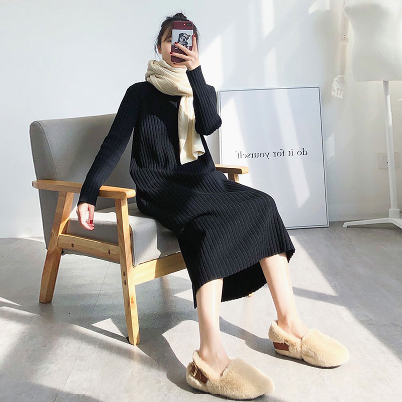 Early spring 2022 New French style black long sleeve knitted sweaters with superior sense little sub-long dress