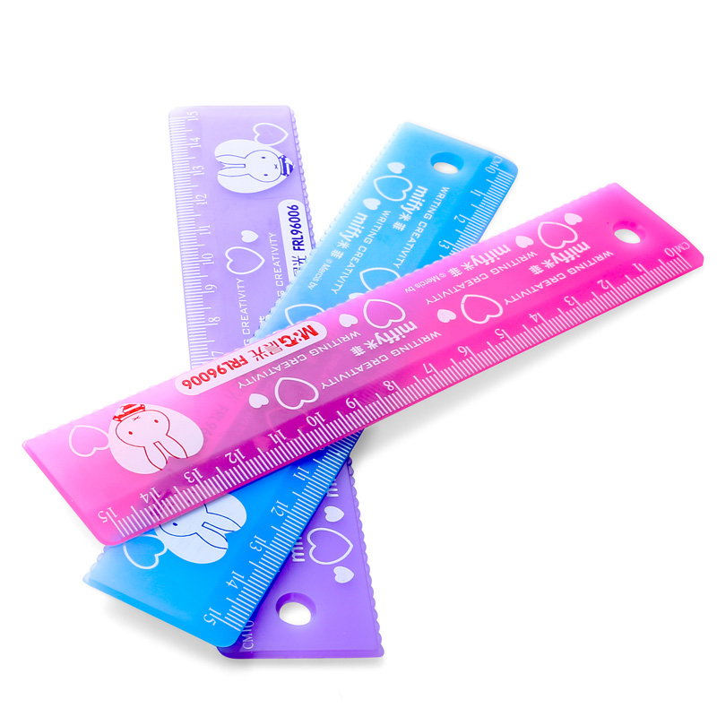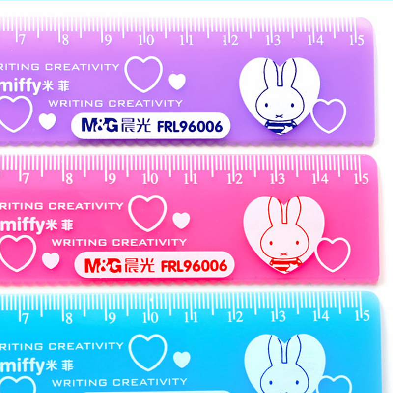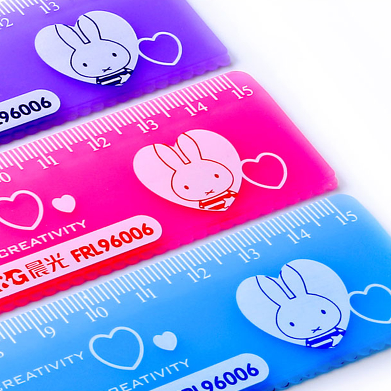Chenguang Miffy student wave straight ruler multi-specification cute primary school students with plastic color exam geometry tools