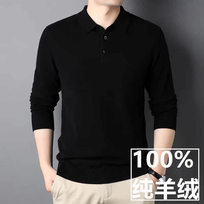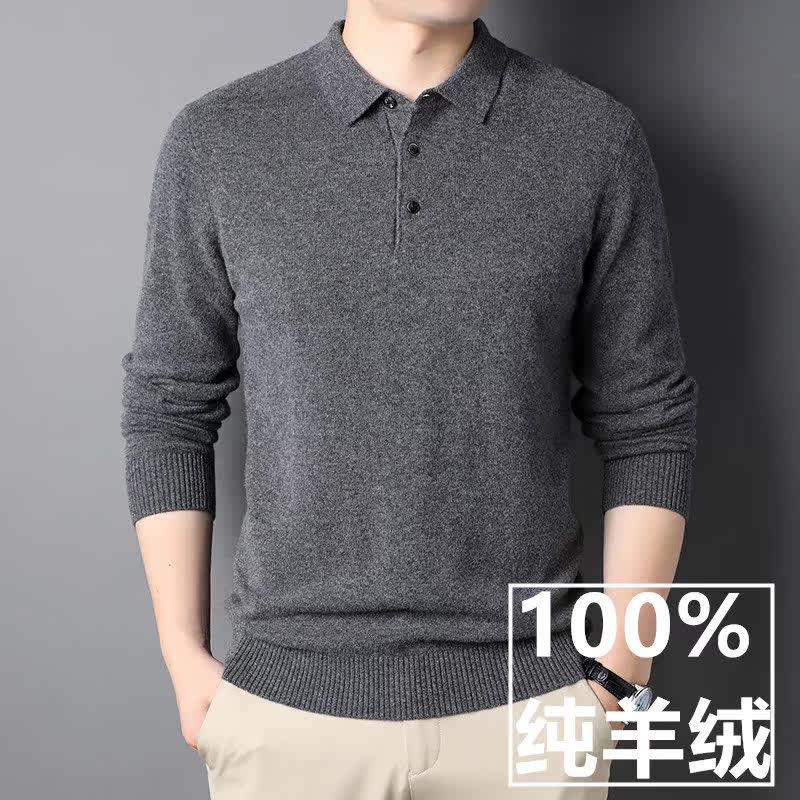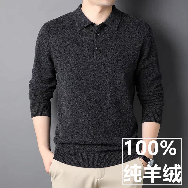 Cashmere sweater men's 100 pure cashmere thickened wool sweater dad wear long-sleeved T-shirt winter casual solid color sweater