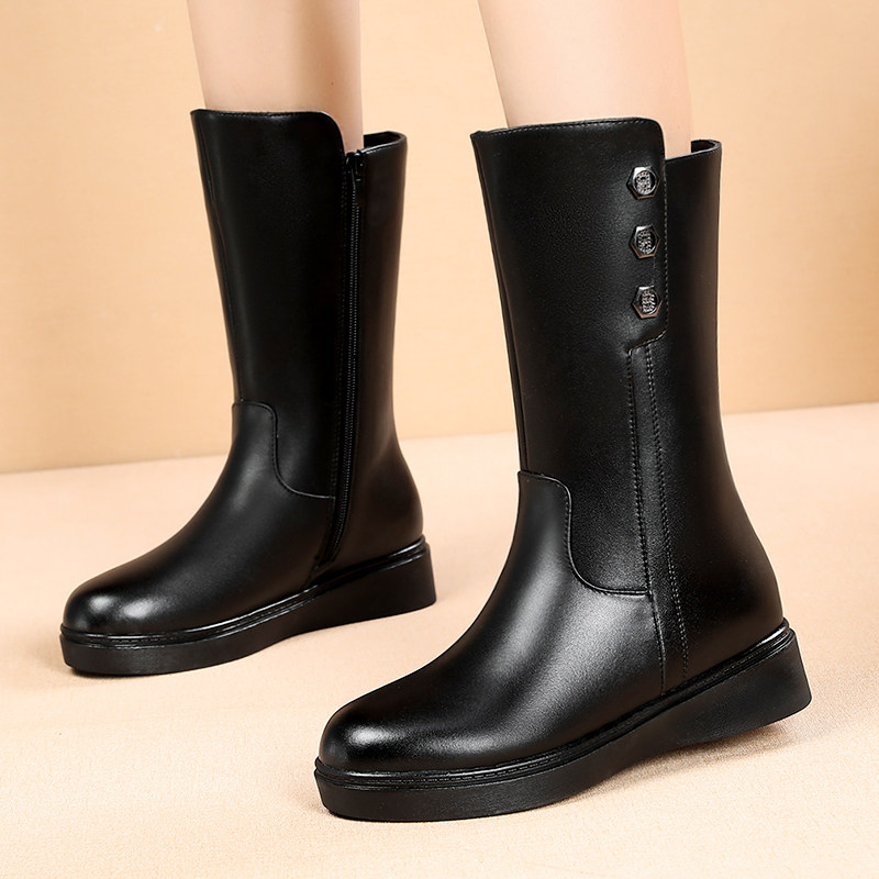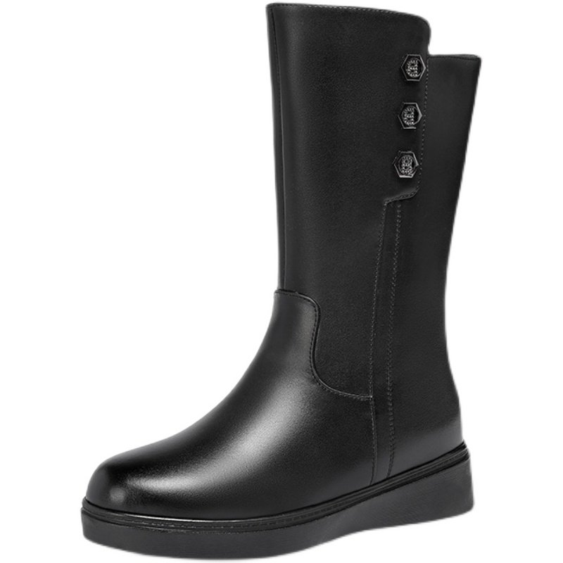 Middle-boot lady leather flat wool boots plus thick snow boots fur one thick sole northeast cotton shoes