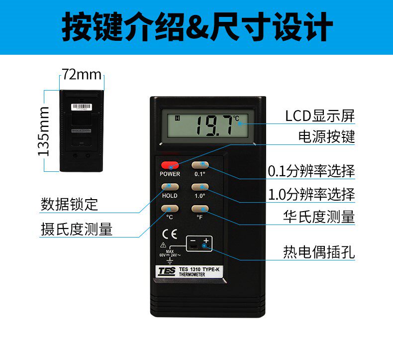 Taiwan tes1310 contact thermometer high precision digital thermometer industrial thermocouple thermometer