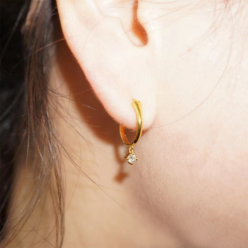 18K Gold Diamond Earrings Gold Earrings With single drill ear Ear accessories Brief about 100 hitch Pendant Women Thick Gold Solid Fashion