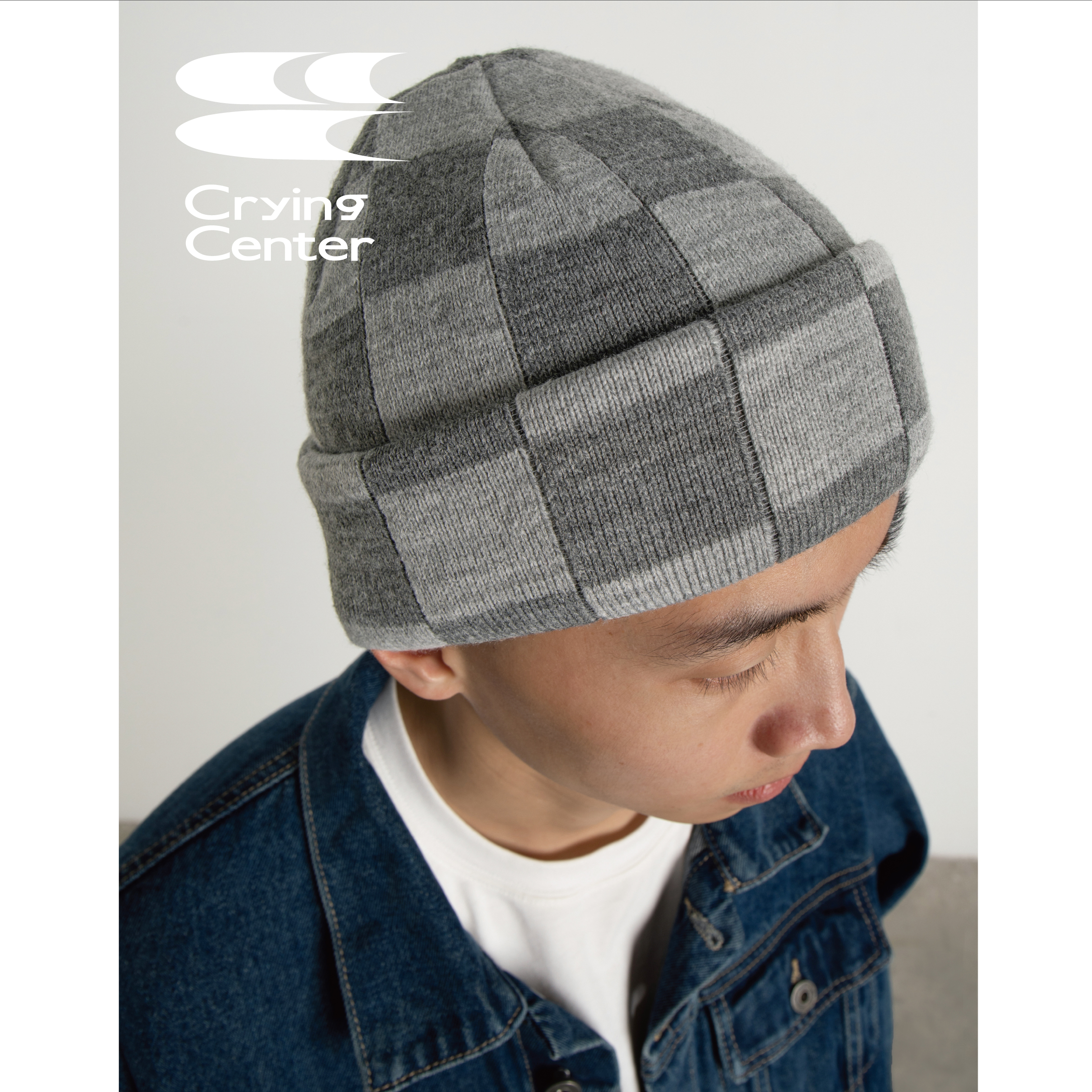 CryingCenter Grey Checkerboard Knit Cold Hat Beanie Hat Retro Street Cry Center