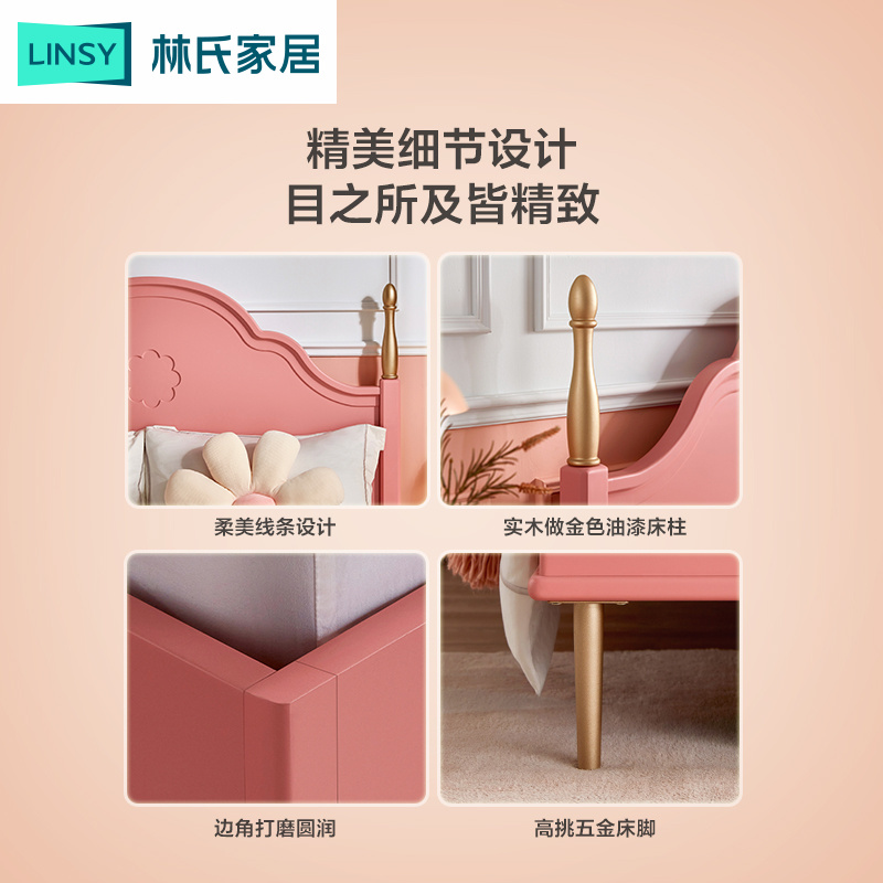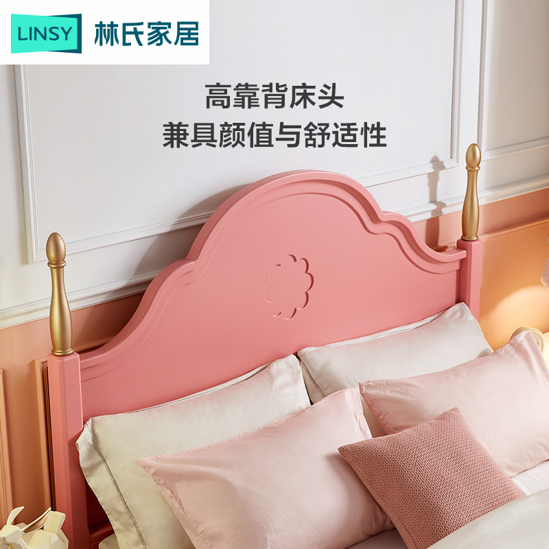 Lin's Wood Industry 1 5m Children's Bed Net Red Princess Bed Little Girl Bedroom Pink Single Bed Furniture LH218