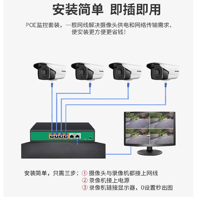 4 million POE monitor equipment set full system HD photography home outdoor night vision camera commercial