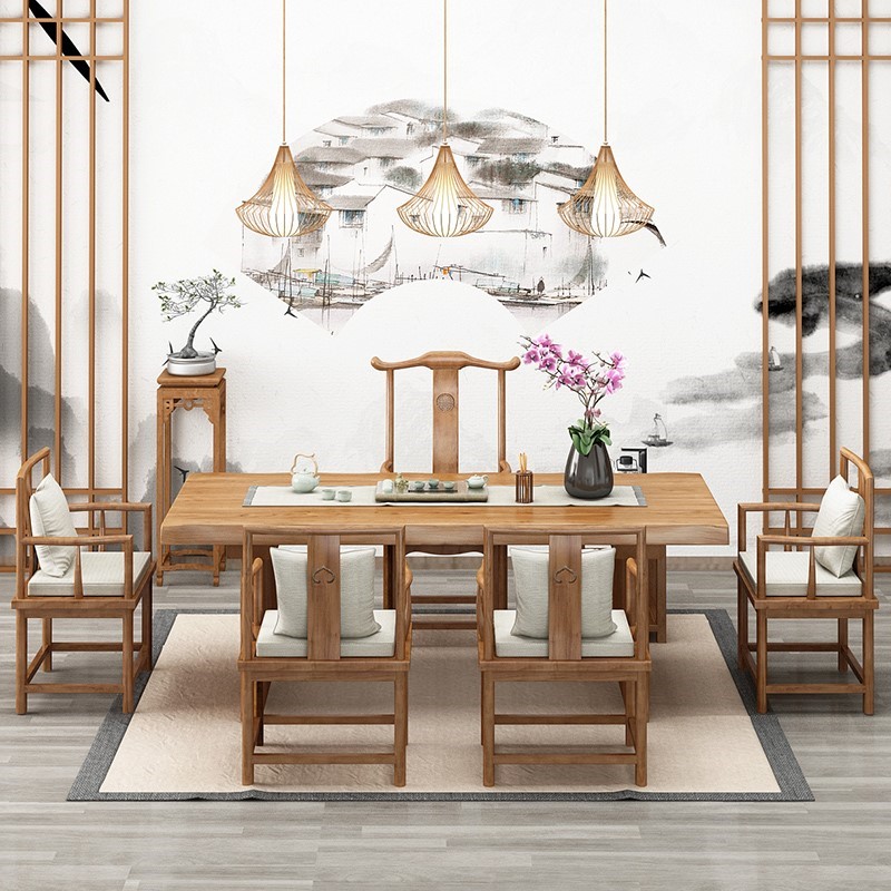 Modern Zen Kung Fu Tea Big Board 1 m 8 Tea Table And Chairs Combination Brief New Chinese Log Tea Table Solid Wood Tea Table