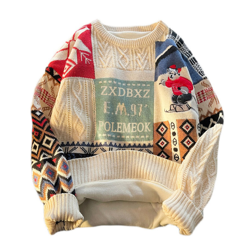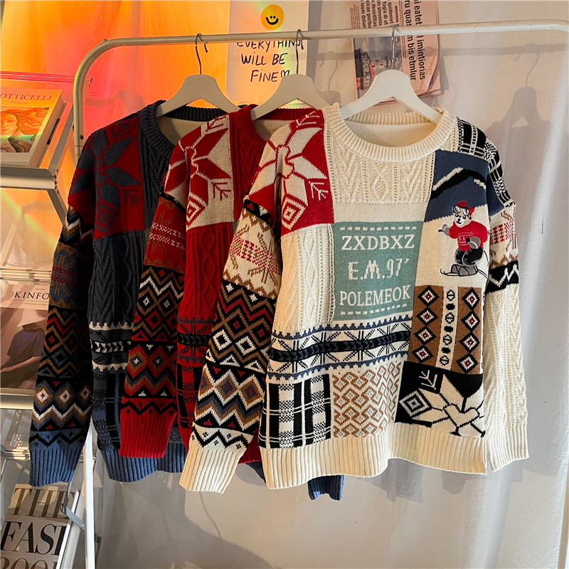 Over New Year's sweater men's winter gush thicken with warm needles weaters and sweaters Hong Kong Relaxed Trend Lovers Dress-Taobao