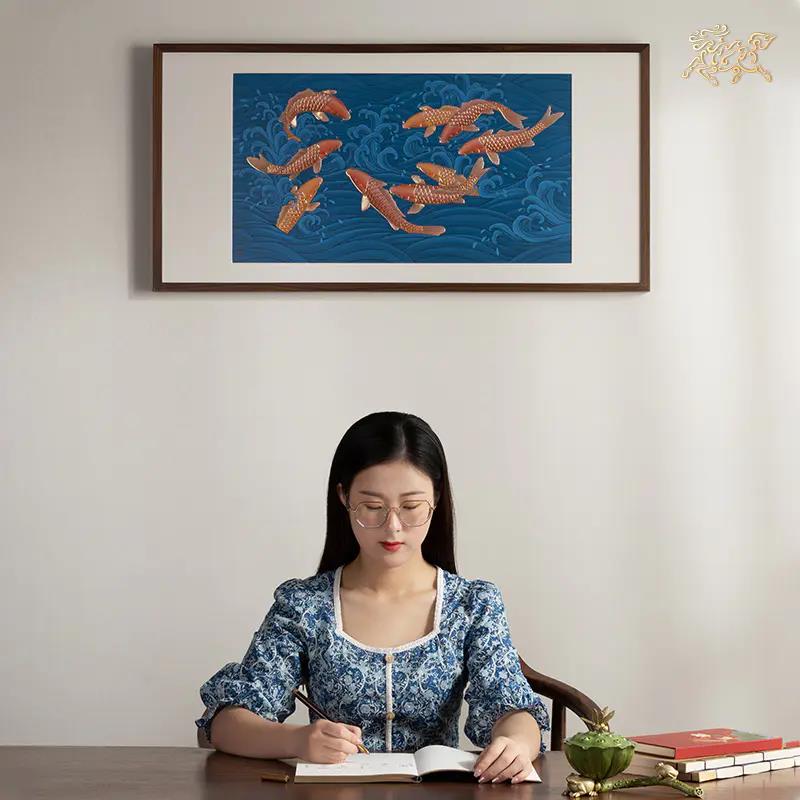 Copper Master hand carved copper sculpture "Nine Fish Happy" decorative painting of the master master painting, hanging painting murals