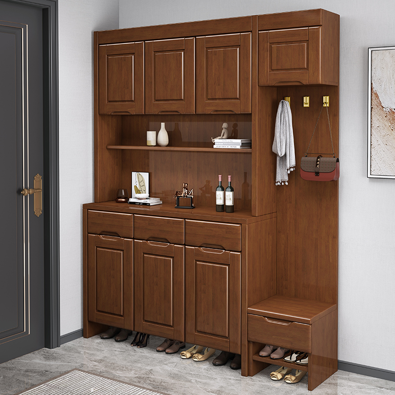 Chinese style solid wood shoes cabinet plus top cabinet with mirror into door-closed cabinet multilayer storage containing shoes closet large capacity integrated