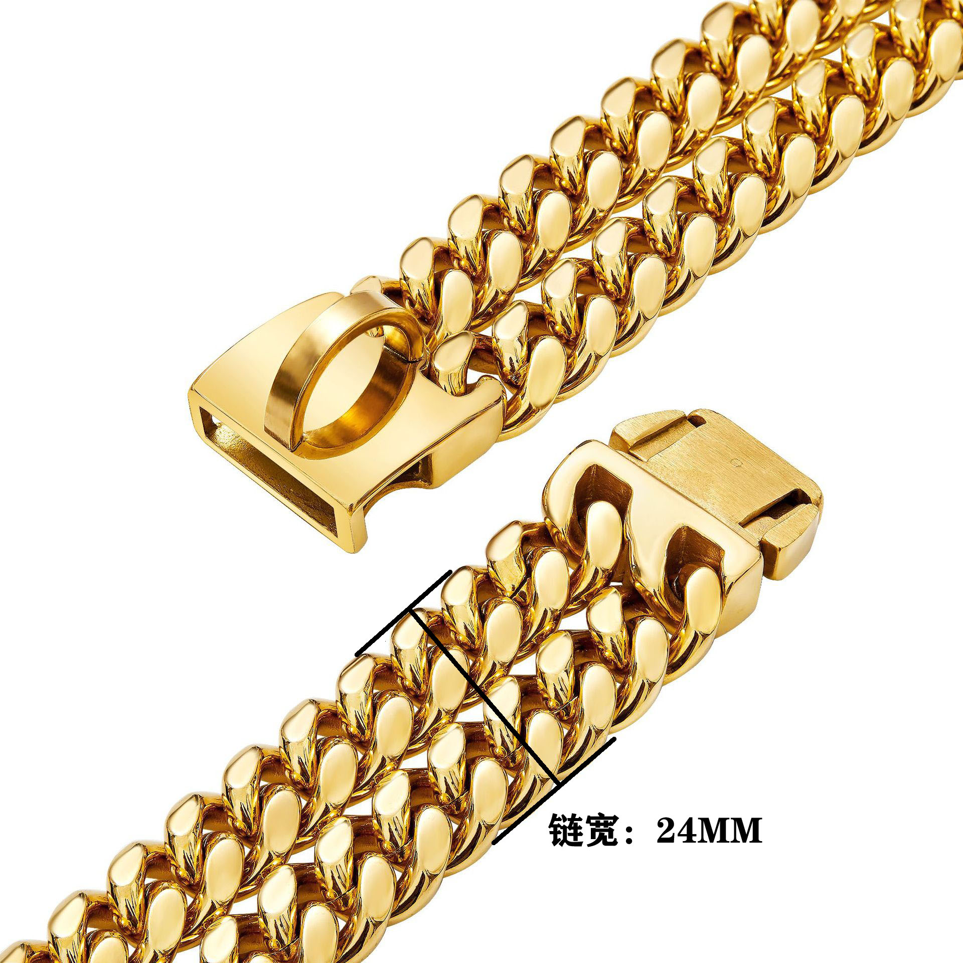 Stainless steel pet dog collar, collar, traction chain, double reinforced dog chain, medium and large dog collar, bully law fight