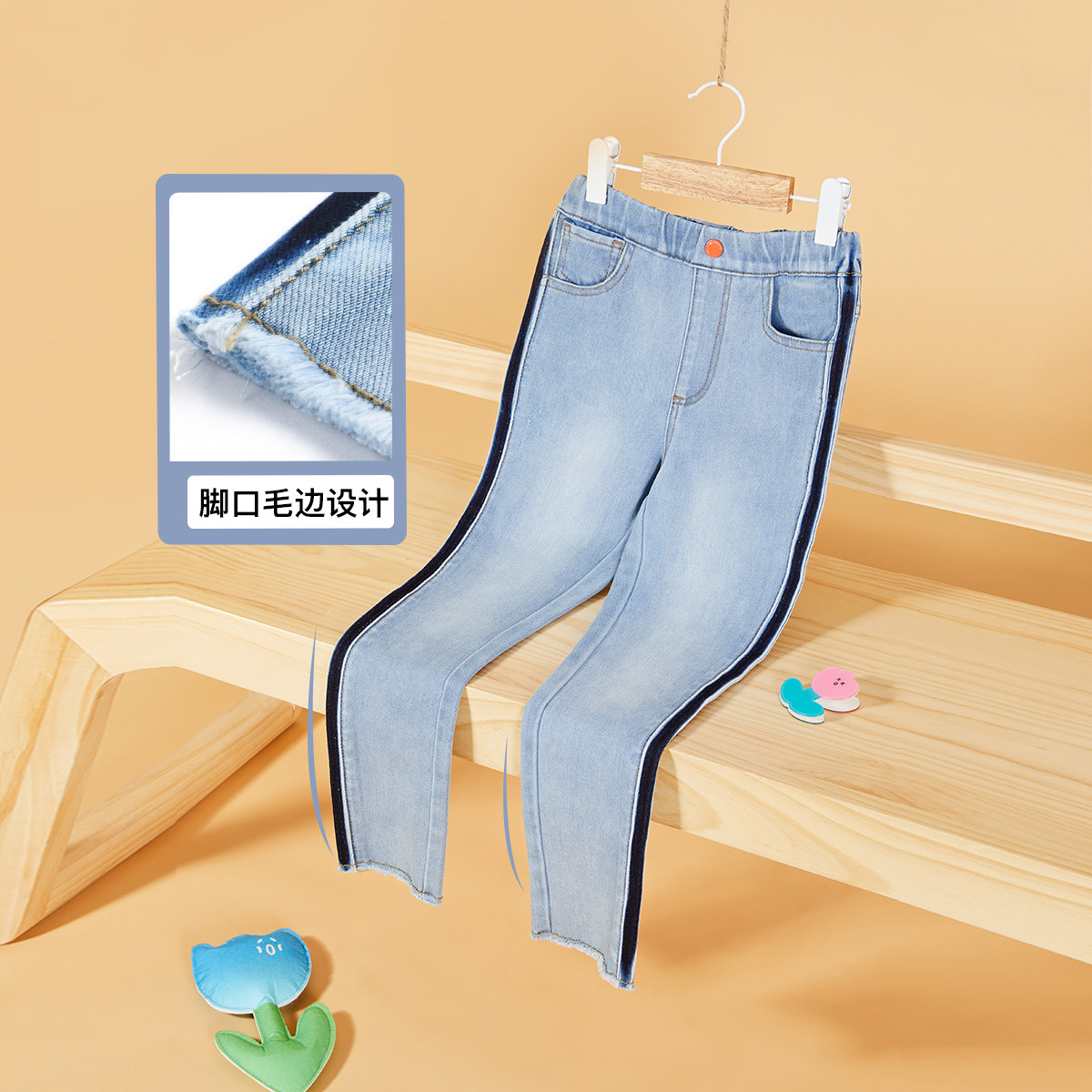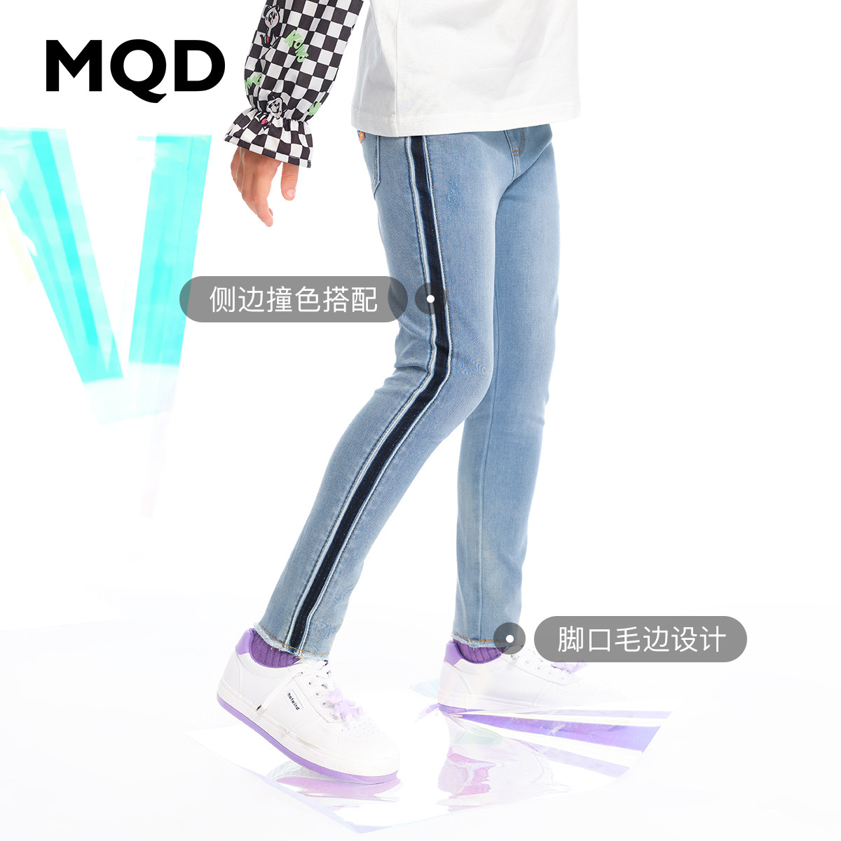 MQD Child Clothing Girl 2022 Spring new jeans CUHK Boy Fashion Casual Girl 100 hitchhiking pants