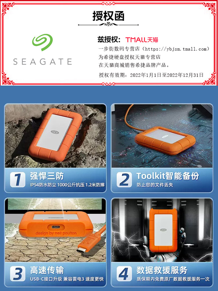 Leizi LaCie Rugged USB-C Type-C mobile hard drive 5t external hard drive portable capacity