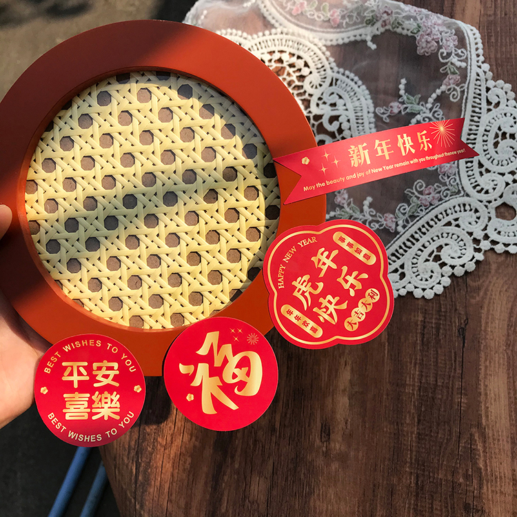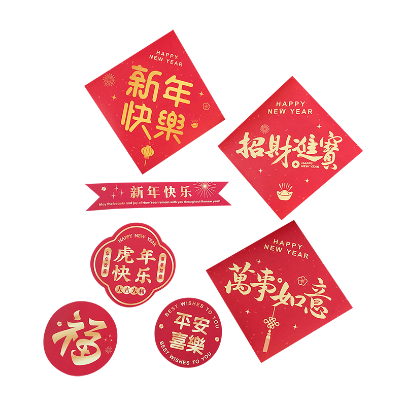 Sticker side length 8cm long and high 11 3cm suit sticker 11 *2cm New Year Happy sticker 6cm tiger year Happy sticker round 5cm Ping An Happy Joy Sticker Round 5cm Fu Suit
