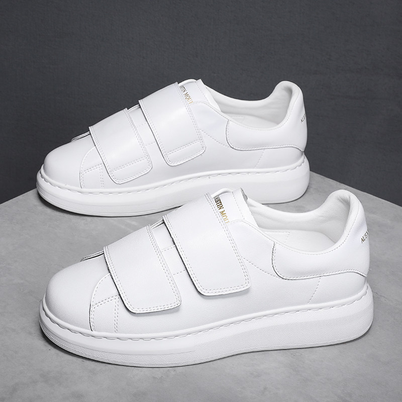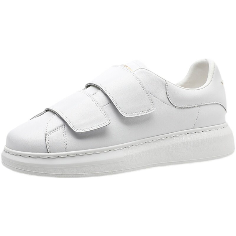 McQuincon genuine leather 100 lap magic sticker breathable small white shoes 46 large size casual 100 lap thick bottom heightening muffin shoes