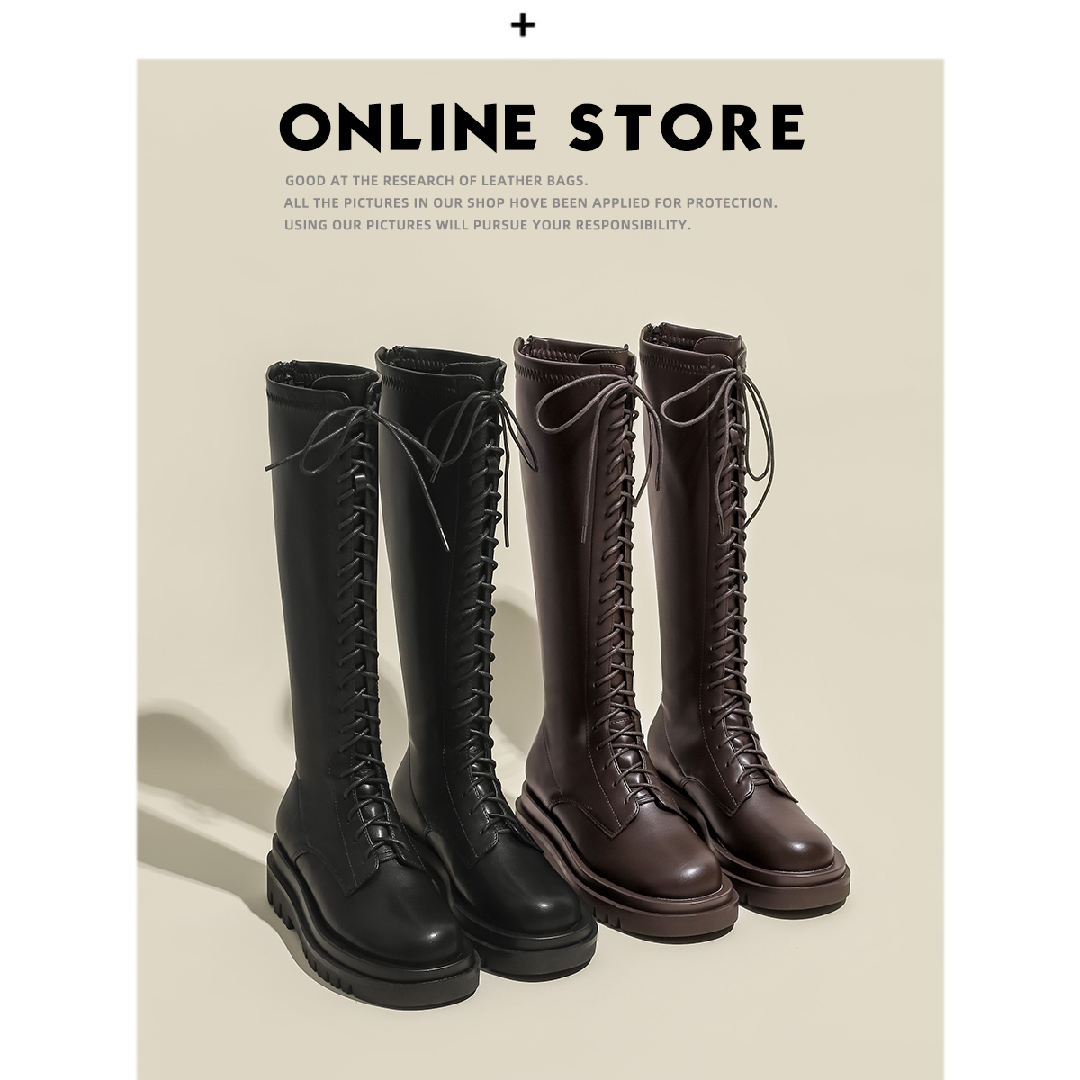 No Two Shoes Workshop Rider Boots Woman 2023 Winter New Inn Wind elastic thick bottom not crossing knee length boots high cylinder boots-Taobao