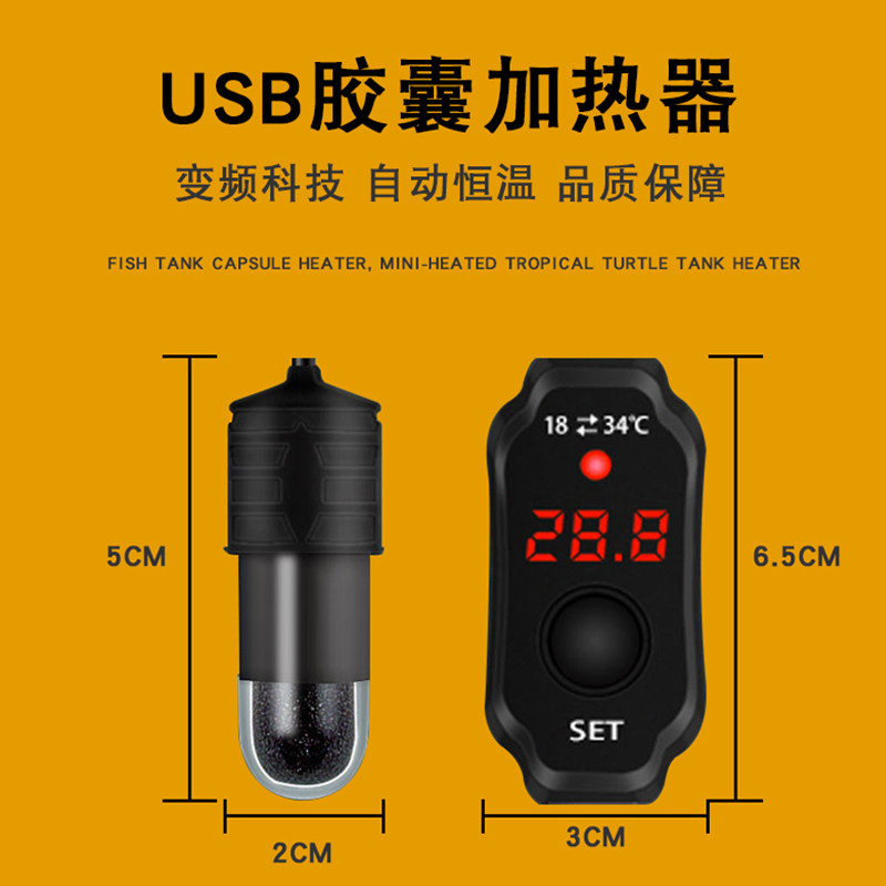 Microcylinder heating bar Fish heater number micro-short mini electronic control automatic thermostat quartz USB