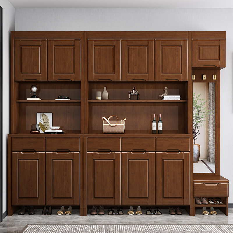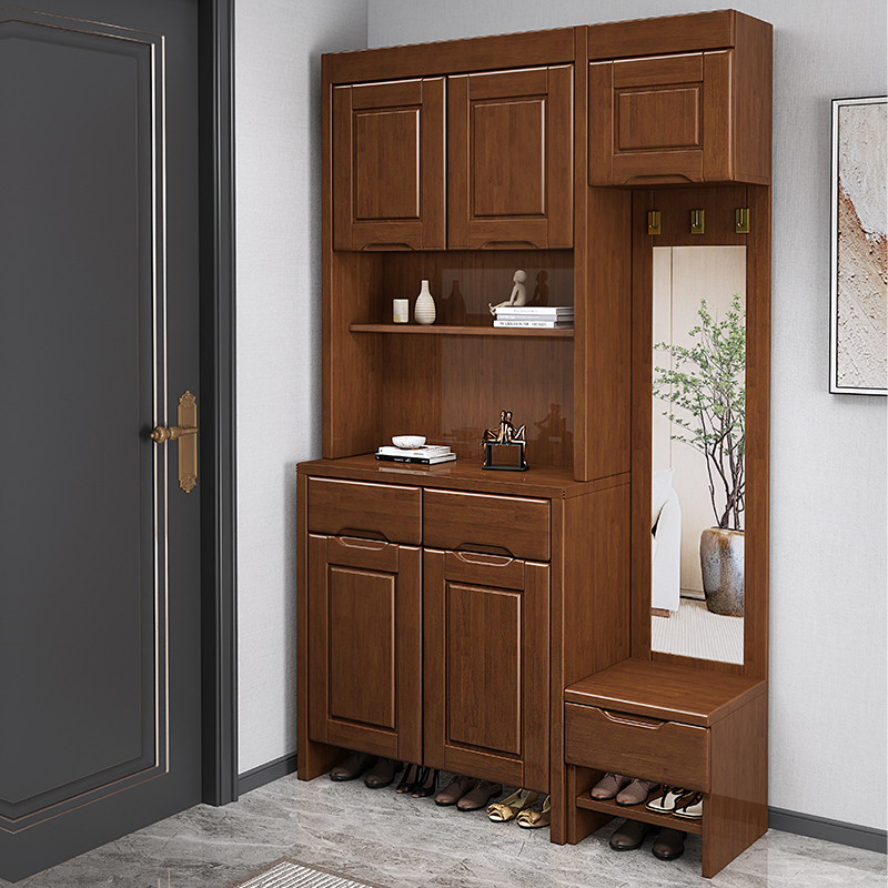 Modern Chinese solid wood shoe cabinet with mirror entry porch cabinet hanging wardrobe storage storage shoe cabinet large capacity one