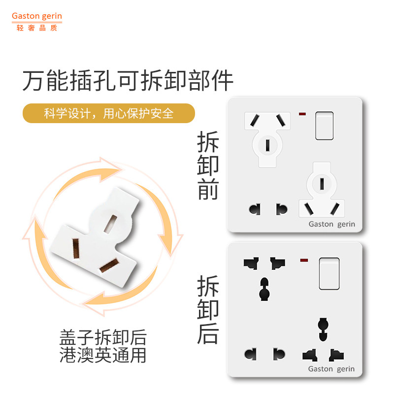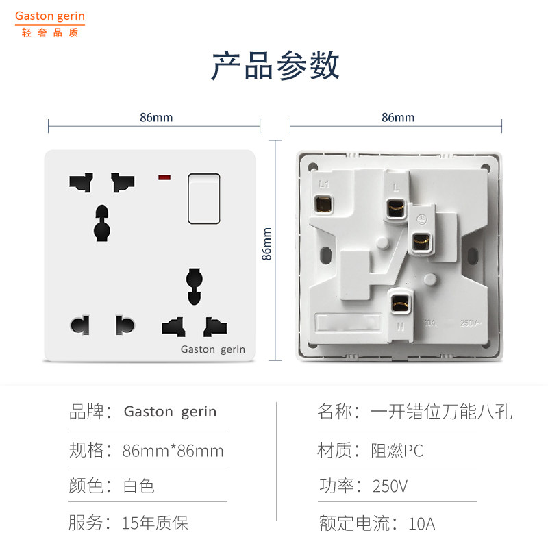 Type 86 concealed multi-function one-open eight-hole socket two-three-three with switch dislocation 6-hole 8-hole ten-hole five-hole panel