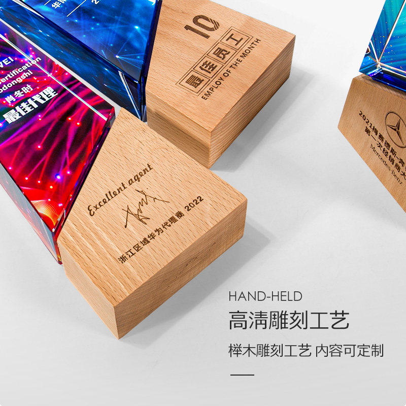 Crystal trophy custom medal custom love authorization card honor new creative color printing lettering excellent staff big