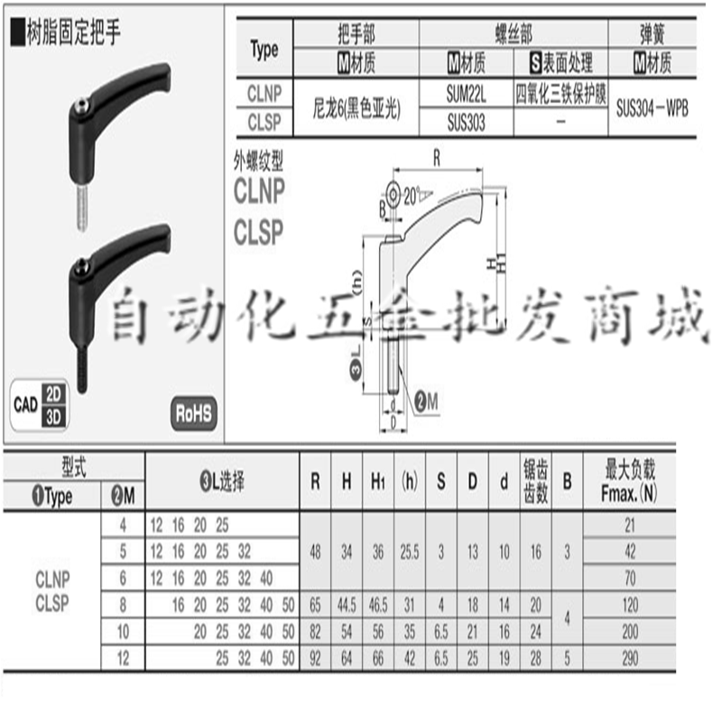 Resin handle CLNP5 6 8 10 12-12 16 20 25 32 40 50