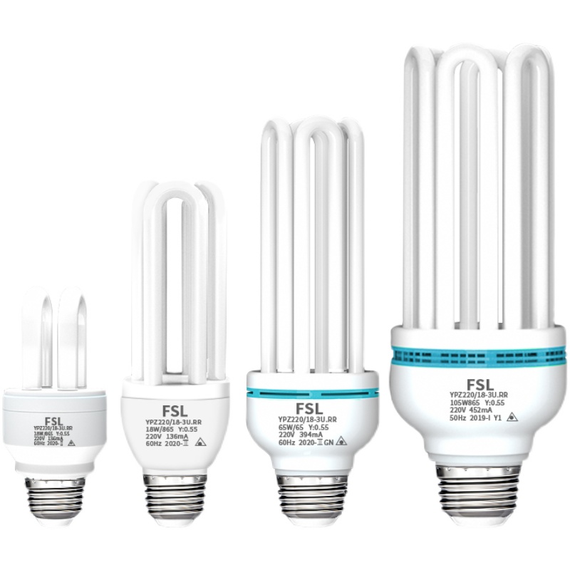 FSL Foshan Lighting 2U energy-saving lamp E27 screw three-color electronic energy-saving bulb spiral fluorescent lamp super bright