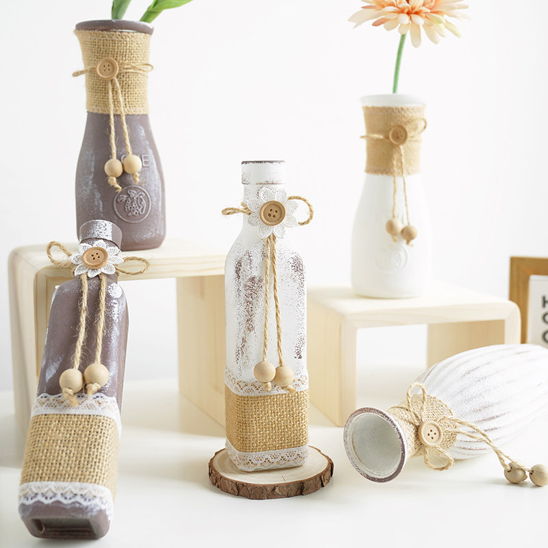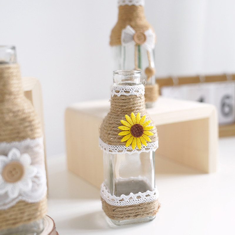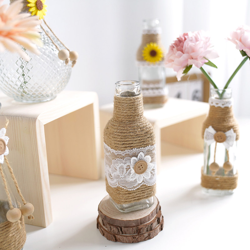 Large-mouth transparent bottle on the hemp rope Large-mouth transparent bottle under the hemp rope large-mouth bottle