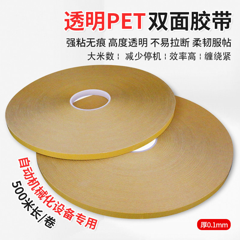 Double-sided adhesive tape high viscosity ultra-thin transparent high temperature resistant powerful PET without scar transportable machine with extra-long 500 m