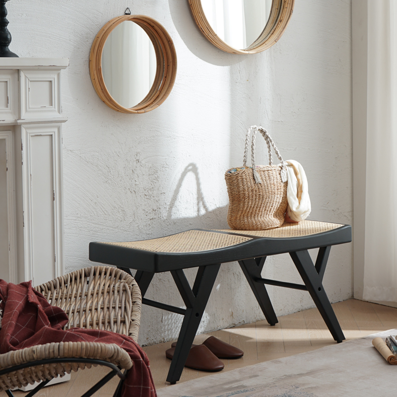Vine-editor-in-house Shoes Stool Folk Juku Solid Wood Changing Shoes Nordic Day-style Bench Domestic Doorway Strip Bench