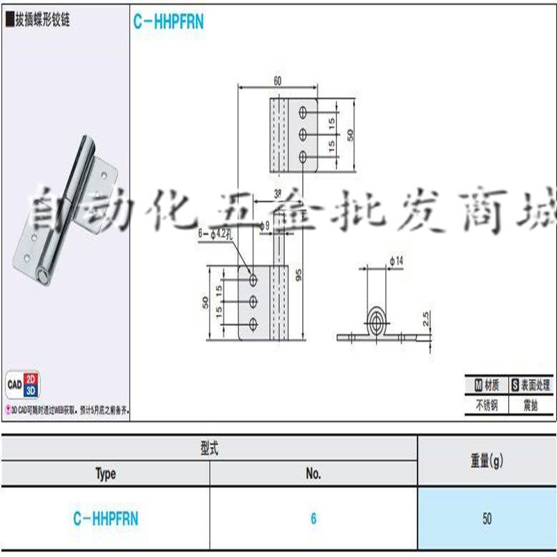 Stainless steel plucculation butterfly hinge hinge C-HHPFRN6