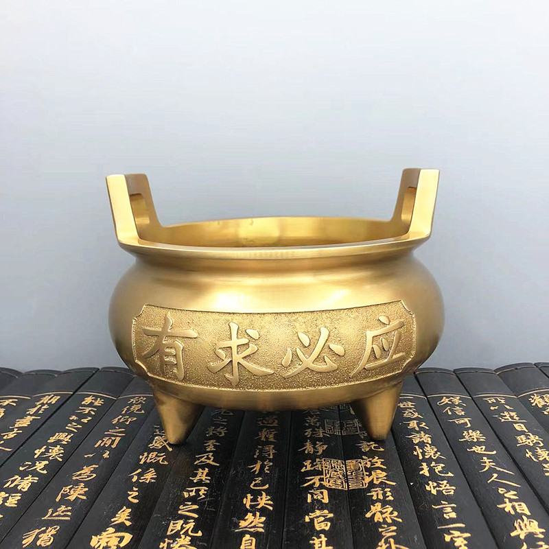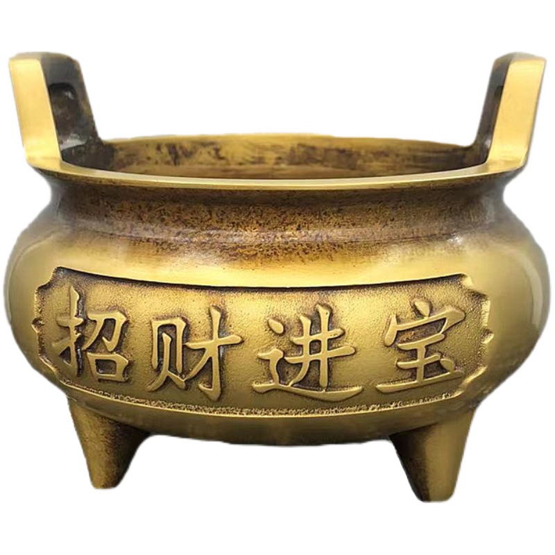 Brass incense burner to attract wealth and treasure new large size should be thickened living room desktop ornaments Chinese-style yellow plain noodles