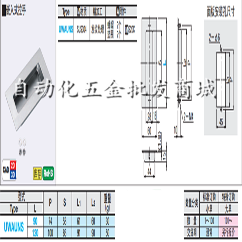 Stainless steel embedded handle dark handle UWAUNS90 UWAUNS120