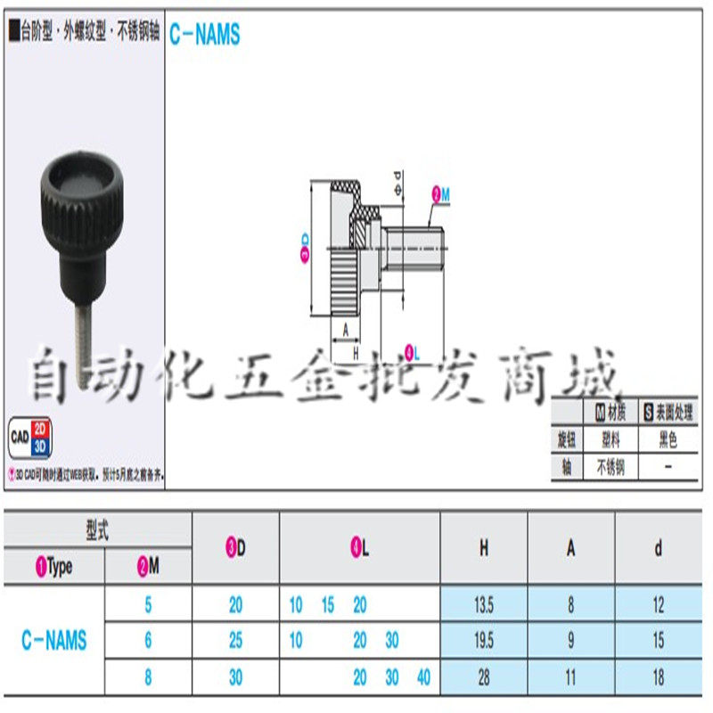 Stainless steel embossing knob C-NAMS5 6 8-20 25 25 15 15 20 30 40