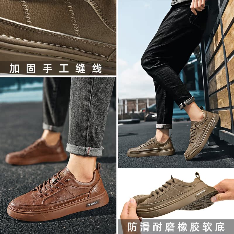 Board Shoes Men 2022 New Summer Han Edition 100 Hitch Fashion Men Casual Leather Shoes Retro Flat Bottom Men's Shoes Brown