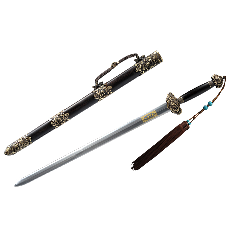 Kowloon Heavy Sword (made of old fitted octafacial patterned steel black sandalwood) Zhejiang master unopened with a long sword