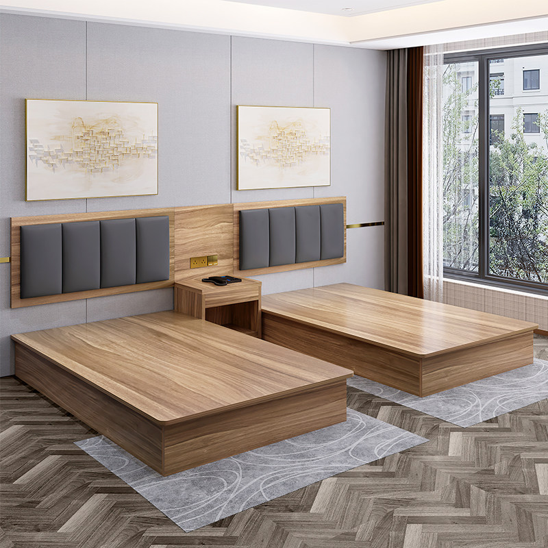 Hotel furniture hotel bed standard room single room full set custom homestay apartment single double bed room rental room bed style