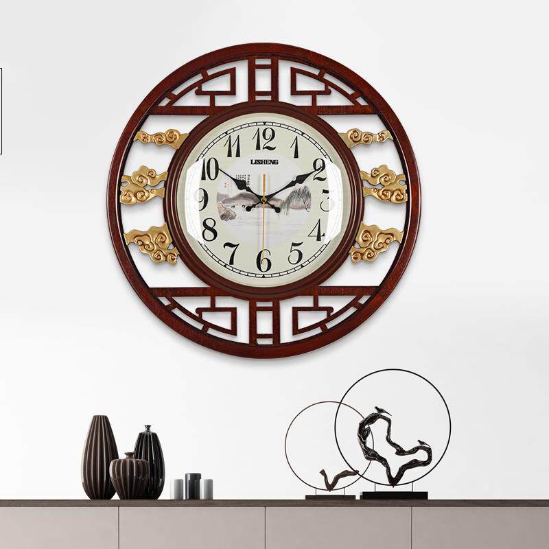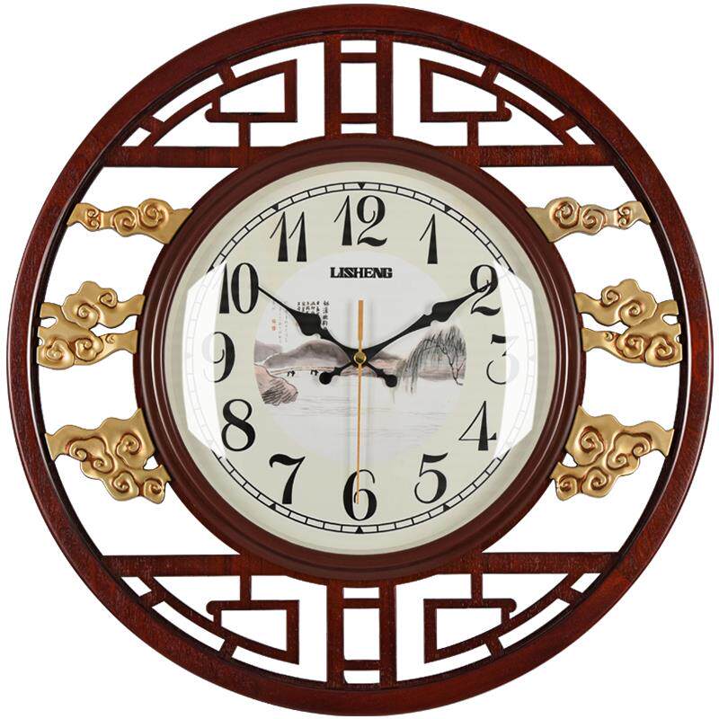 New Chinese solid wood hanging clock Living room Atmosphere China Wind Home Fashion creative quartz Clock Table retro wall-mounted wall clock