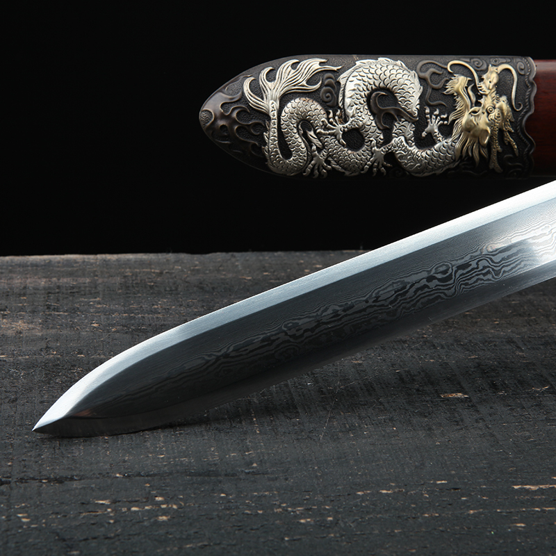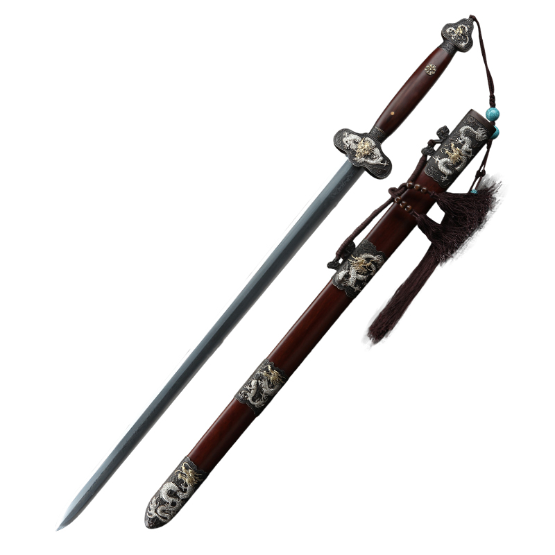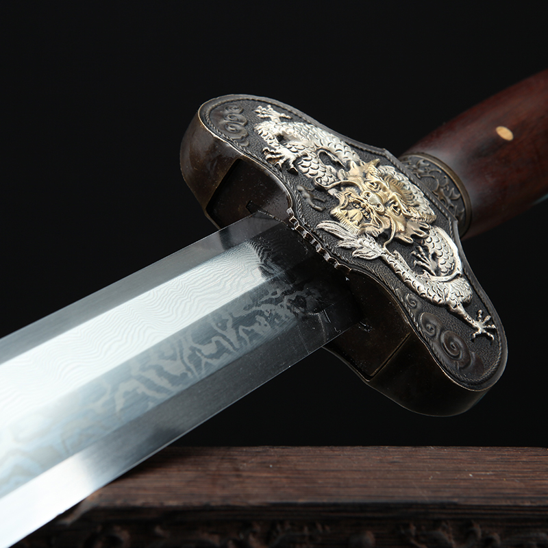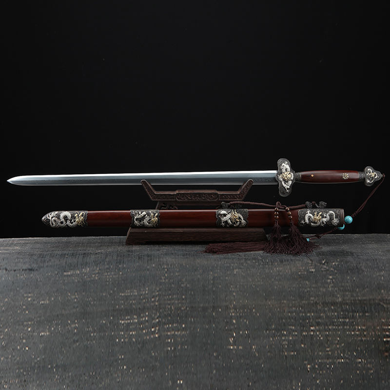 White gold silver dragon sword (octafacial patterned steel acid branch wood) Zhejiang Provincial master Ji Satoshi unopened with a long sword