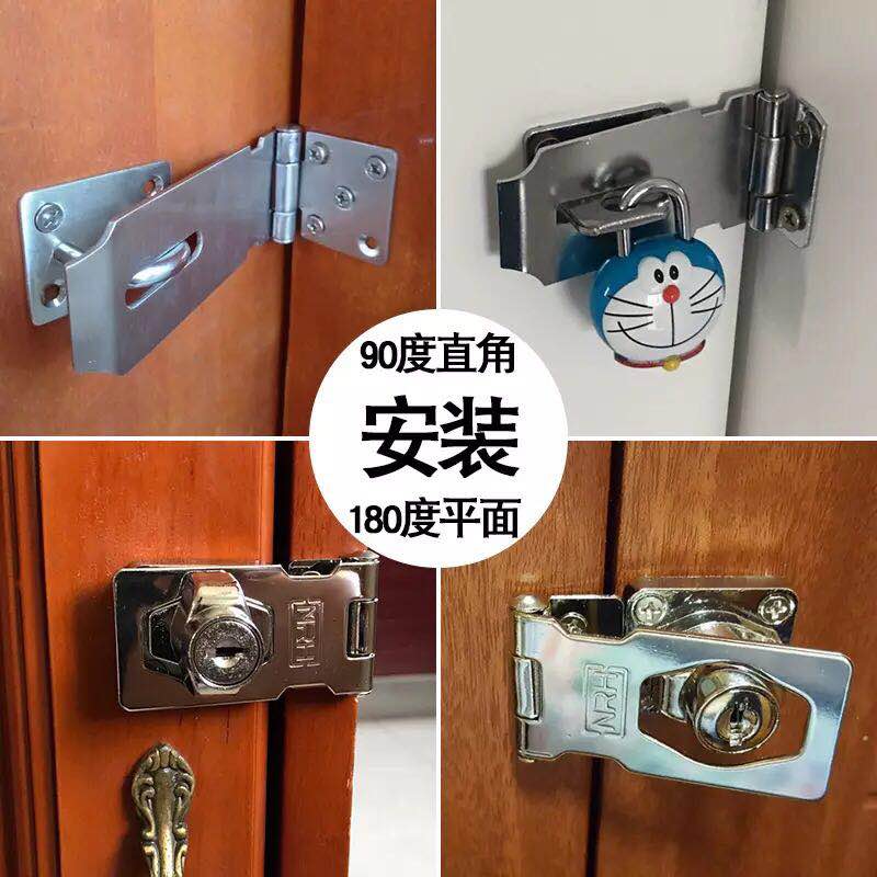 304 new thickened stainless steel wood door padlock buckle old-fashioned Ming-fit iron metal door buttoned door bolt burglar-proof card