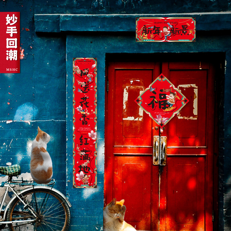 Inexplicate Back to tide Cubist couplets Spring Festival Home Tiger Lunar New Year Spring Festival Spring Festival Spring 2022 Spring Festival Tide Decoration Fu Character Door Sticker