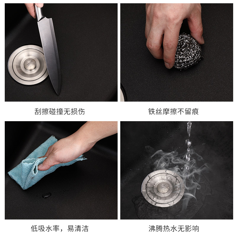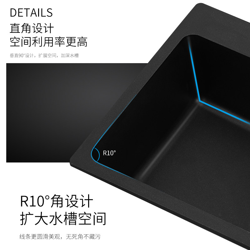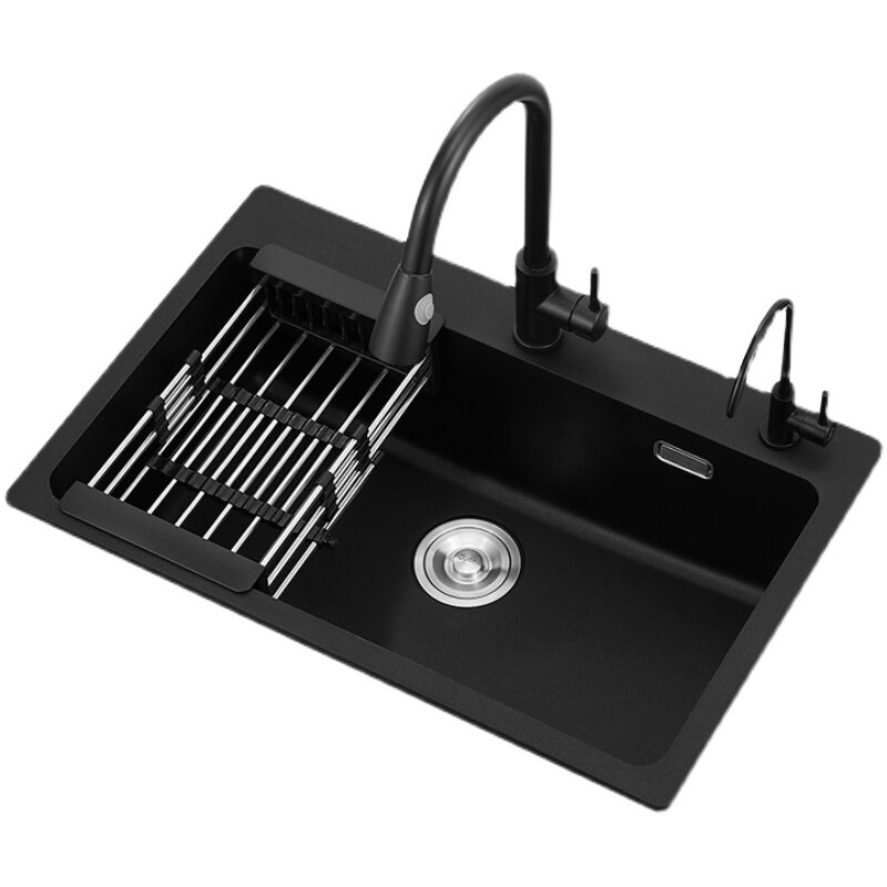 Quartz stone sink package black embedded thickened large single-slot kitchen sink granite sink under the counter