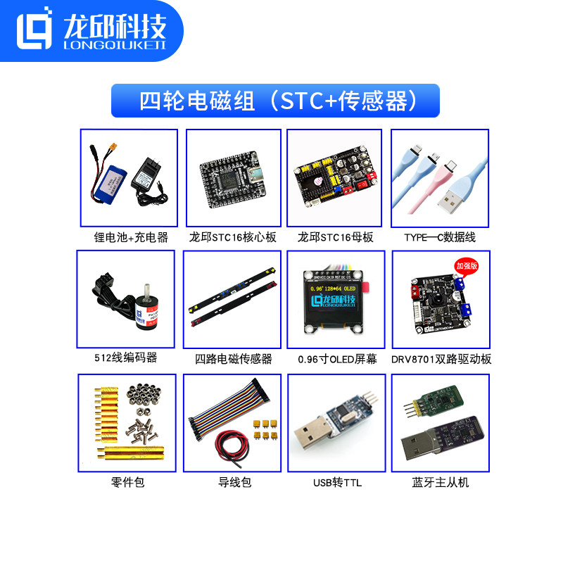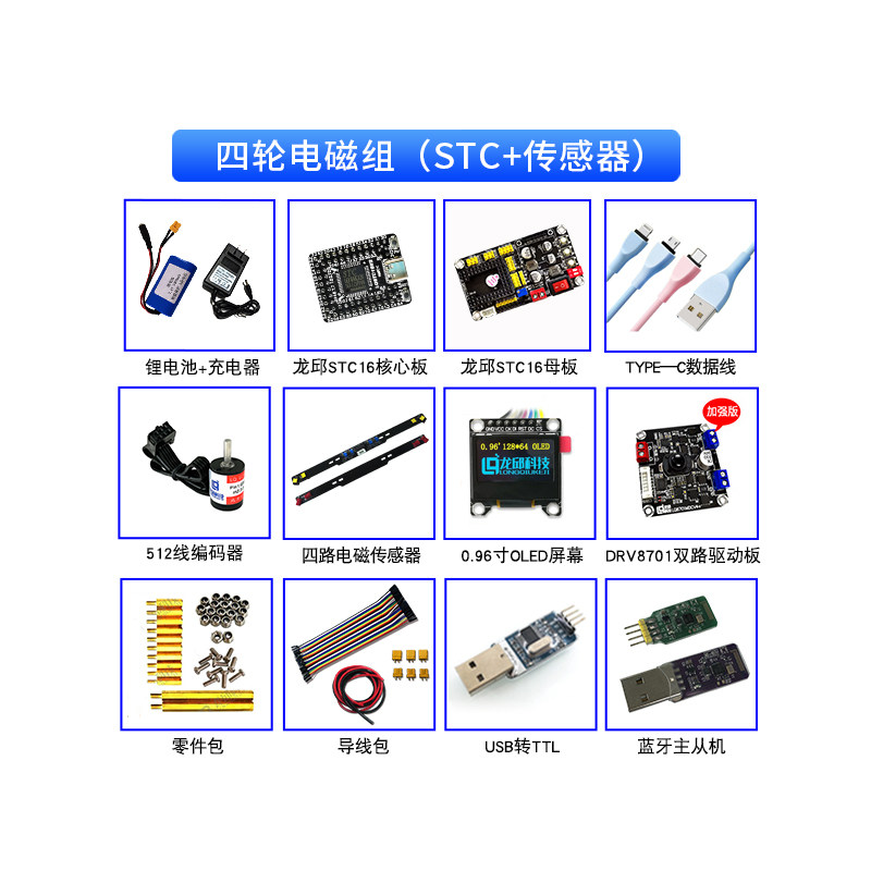 seventeen-round four-wheel electromagnetic group STC16 electromagnetic sensor kit smart car learning kit Longqiu Technology