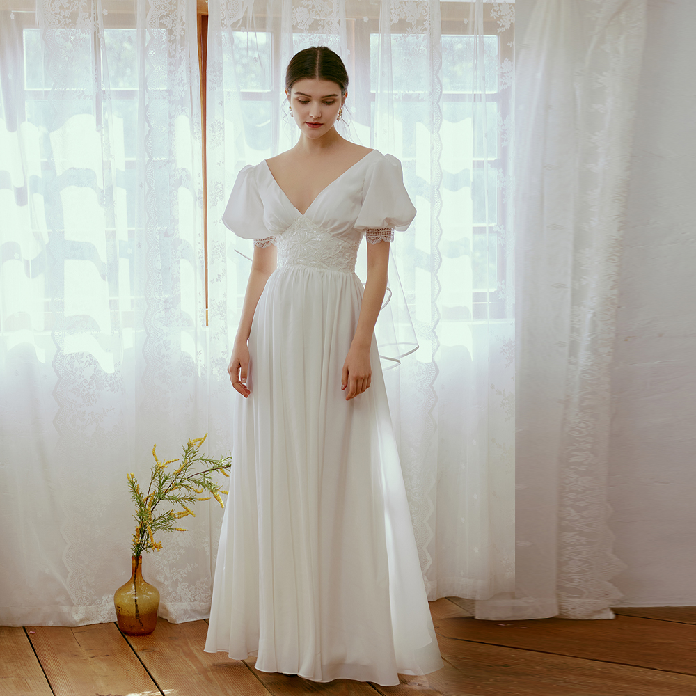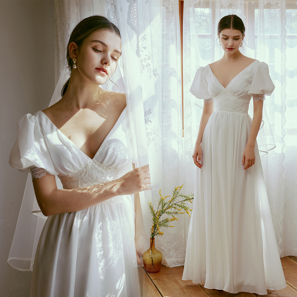 Founder Fanna 2022 designer Comeback Bubble Cuff V collar Back Zi Ground White Light Wedding Dresses Out of the door