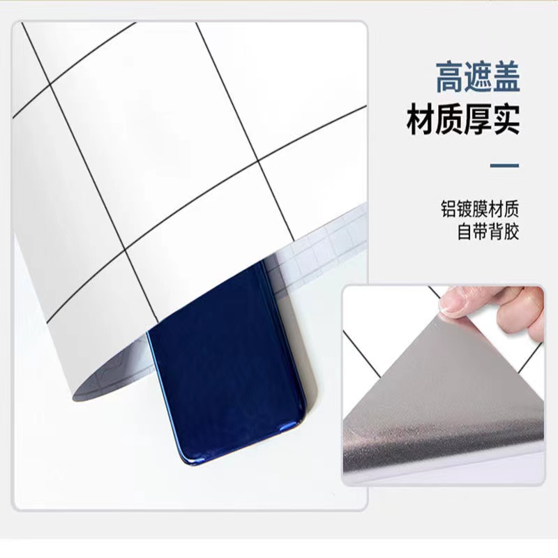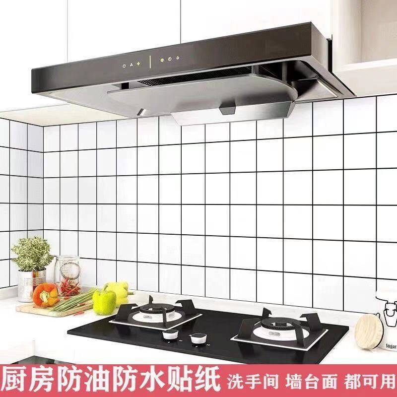Large white lattice kitchen anti-oil sticker self-adhesive high temperature resistant waterproof wall stickup surface integral cabinet waterproof retouching wallpaper
