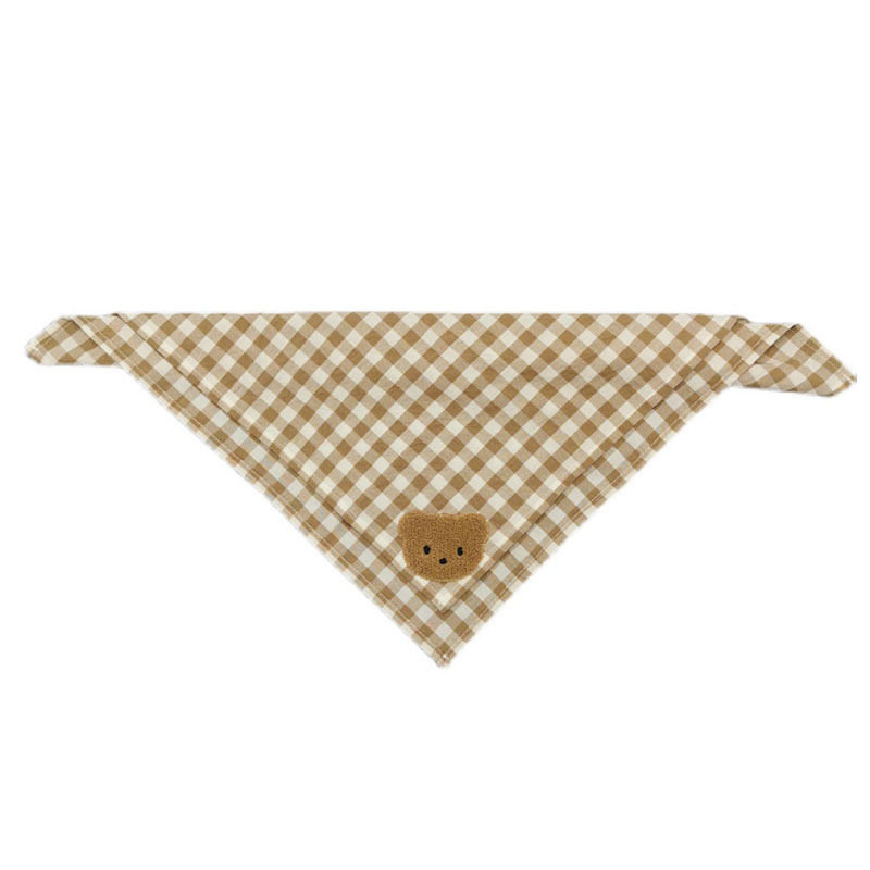 A square towel around the neck of a coffee plate (square towel around the neck) orange pink plate bear (square towel around the neck) blue gray plate