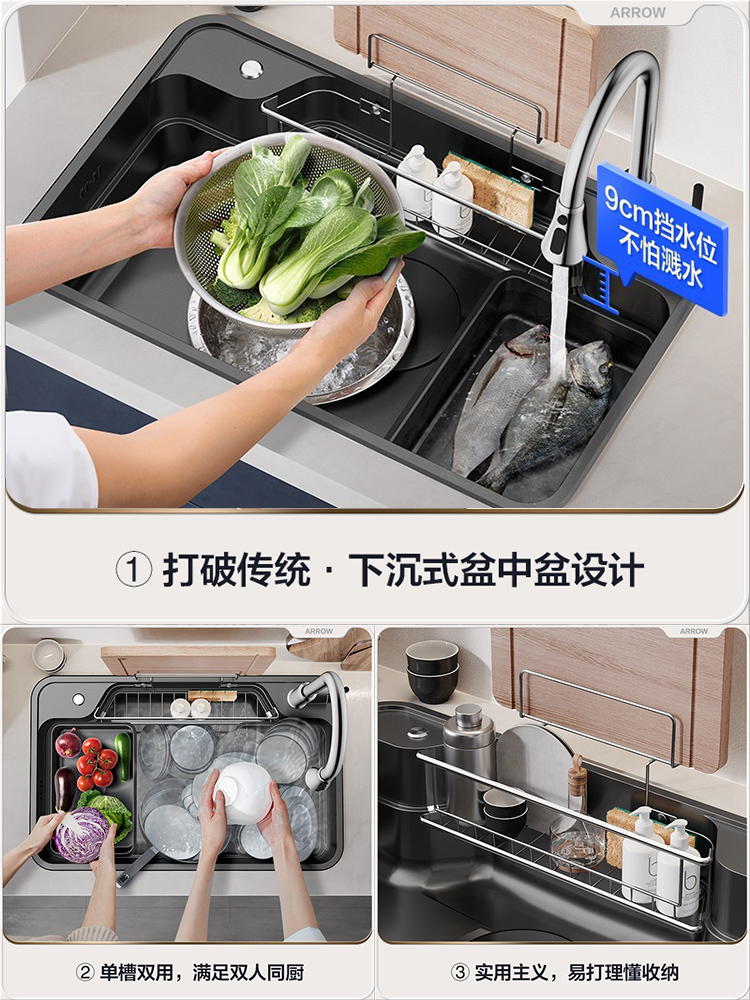 A Day-style large single sink 750 * 480 < without faucets > A day style large single sink 750 * 480 < with a large bend tap > A day style large single sink 750 *