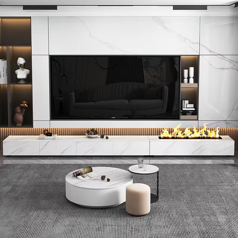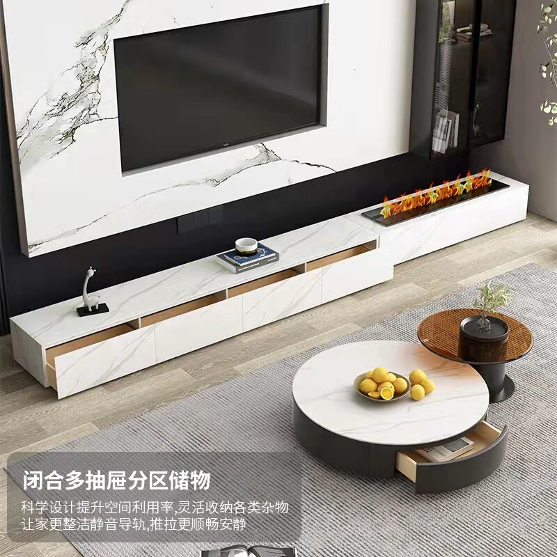Slate TV cabinet with fireplace 3D atomization humidification flame light luxury high-end villa living room background embedded wall cabinet